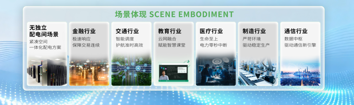 - ACMPD系列一体化UPS:高集成UPS供配电系统,集成UPS主机与输入输出配电,采用180kVA(模块6+1)高密设计,支持一屏多控智能管理,有效解决配电间场景空间紧凑难题,实现极简部署。