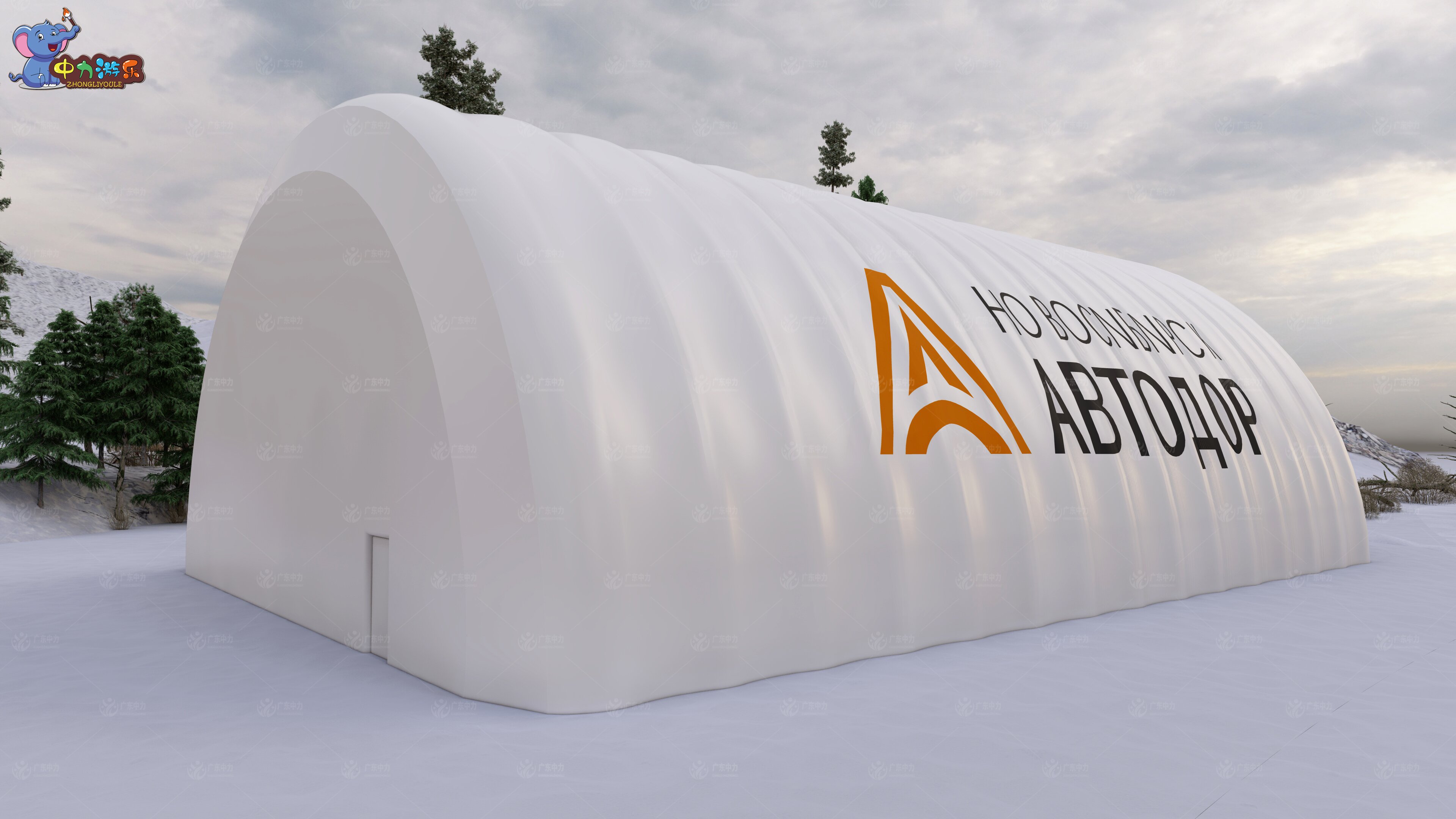 在俄罗斯新西伯利亚气肋停车场项目中,采用PVDF膜材,在零下三四十度的极端环境下保持韧性,弧形设计有效分流强风与自然滑雪。通过螺旋式或打入式地锚固定,无需深挖基础,解决永冻土地带施工难题。高压气肋支撑形成强刚性建筑骨架,支撑大跨度封闭空间并具备高抗压能力。PVDF膜材覆盖具备耐低温、抗拉伸特性,保护内部资产免受严寒与雪荷载侵蚀。项目采用现场充气、快速成型的建造逻辑,大幅缩短恶劣天气下的工期,成功解决停车场建设难题。
